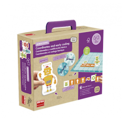 Robocoding: Coordenadas y codificación básica es un recurso manipulativo y cooperativo para iniciarse en la programación de forma tangible y divertida. A través de ruletas, fichas y robots, el alumnado aprende a orientarse en un tablero, trabajar con coordenadas y crear secuencias de movimientos paso a paso.