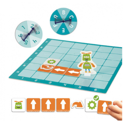 Girando las ruletas y situando los robots en el tablero, niñas y niños descubren que cualquier reto puede dividirse en pequeñas acciones. Un material ideal para comprender los fundamentos del pensamiento computacional sin pantallas, fomentando la experimentación, el diálogo y el trabajo en equipo.